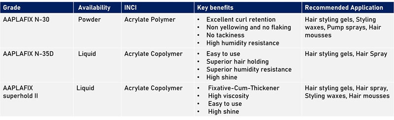 AAPLAFIX is a new innovative hair fixative range specially developed for film forming property for hair